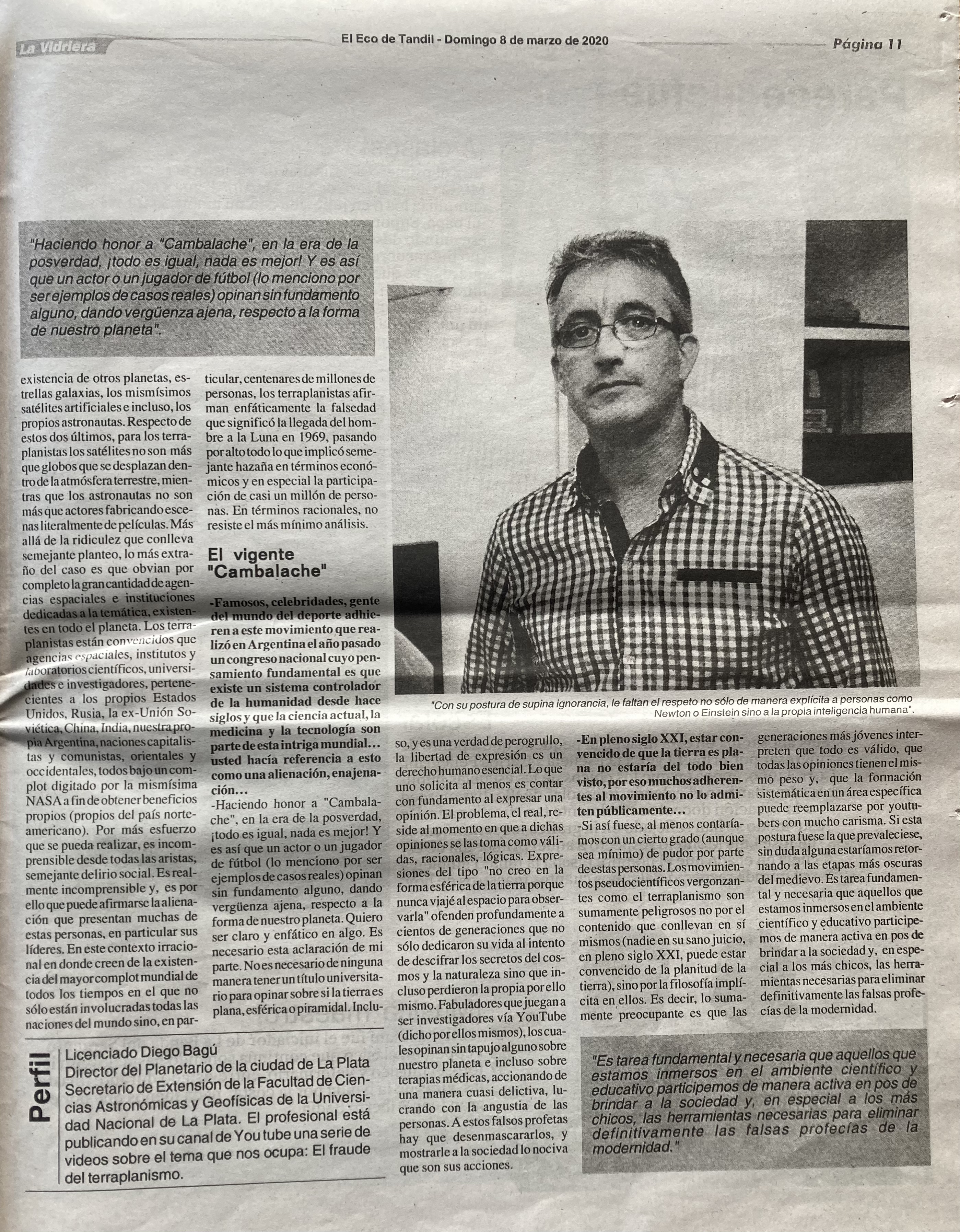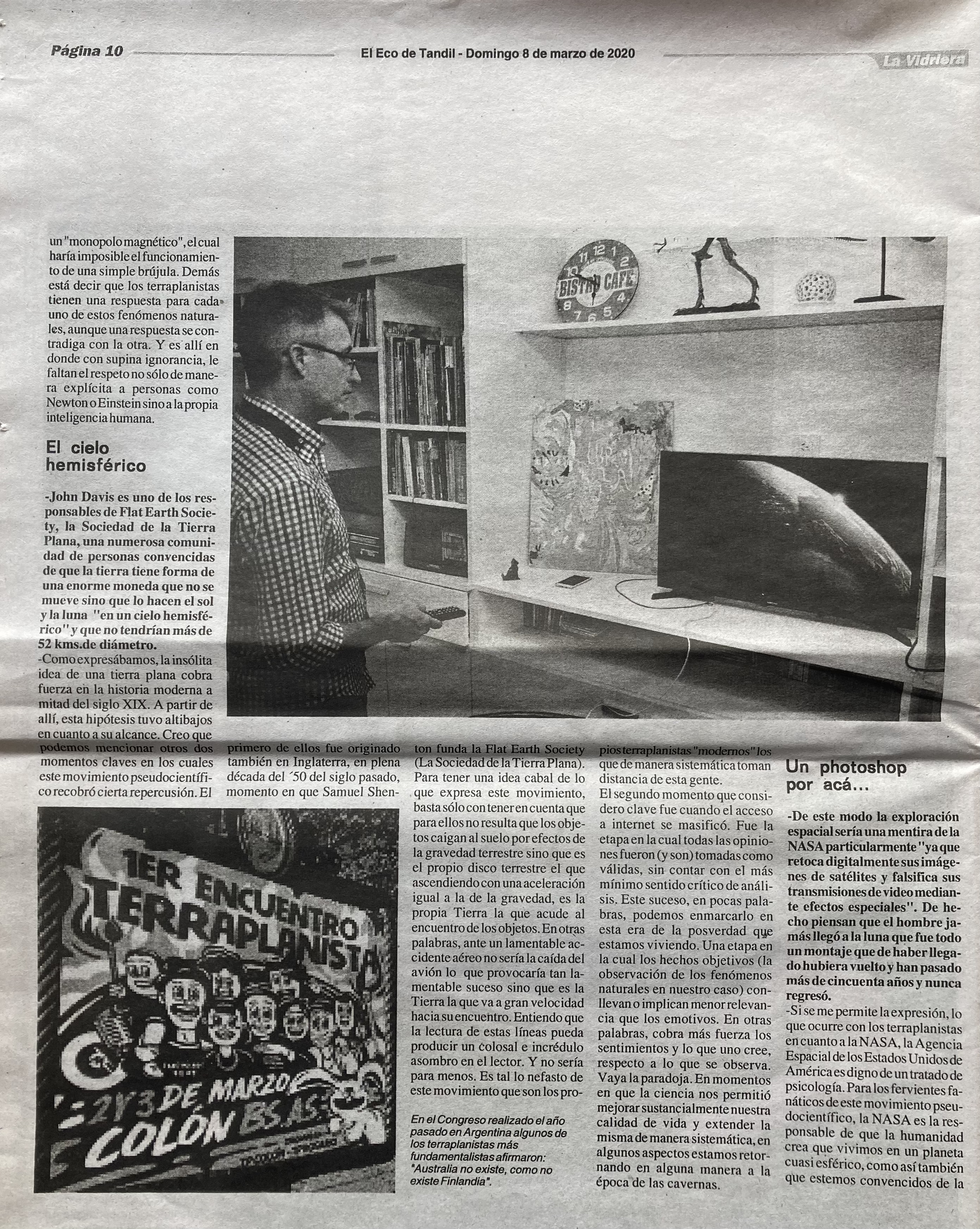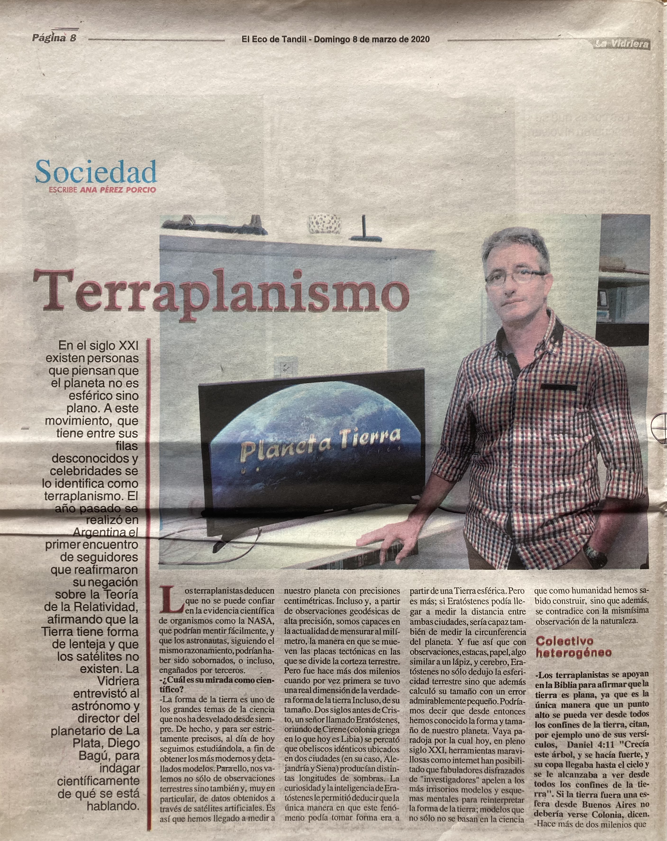 Entrevista para el diario El Eco de Tandil, el domingo 8 de marzo de 2020.