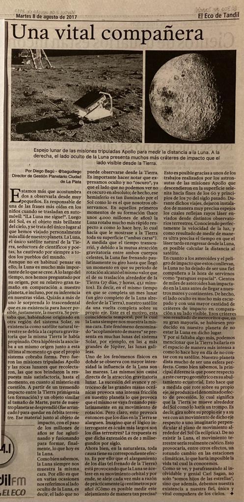 Nota publicada en el diario El Eco de Tandil, el 8 de agosto de 2017. Puedes ver la nota en el siguiente link: